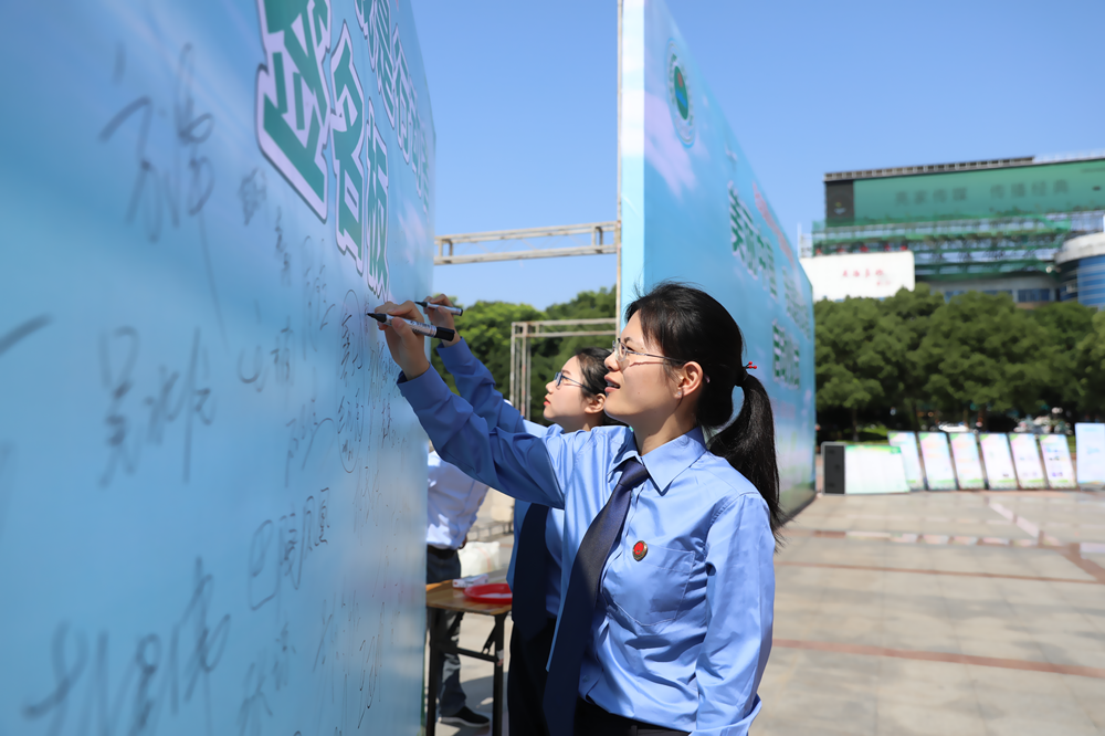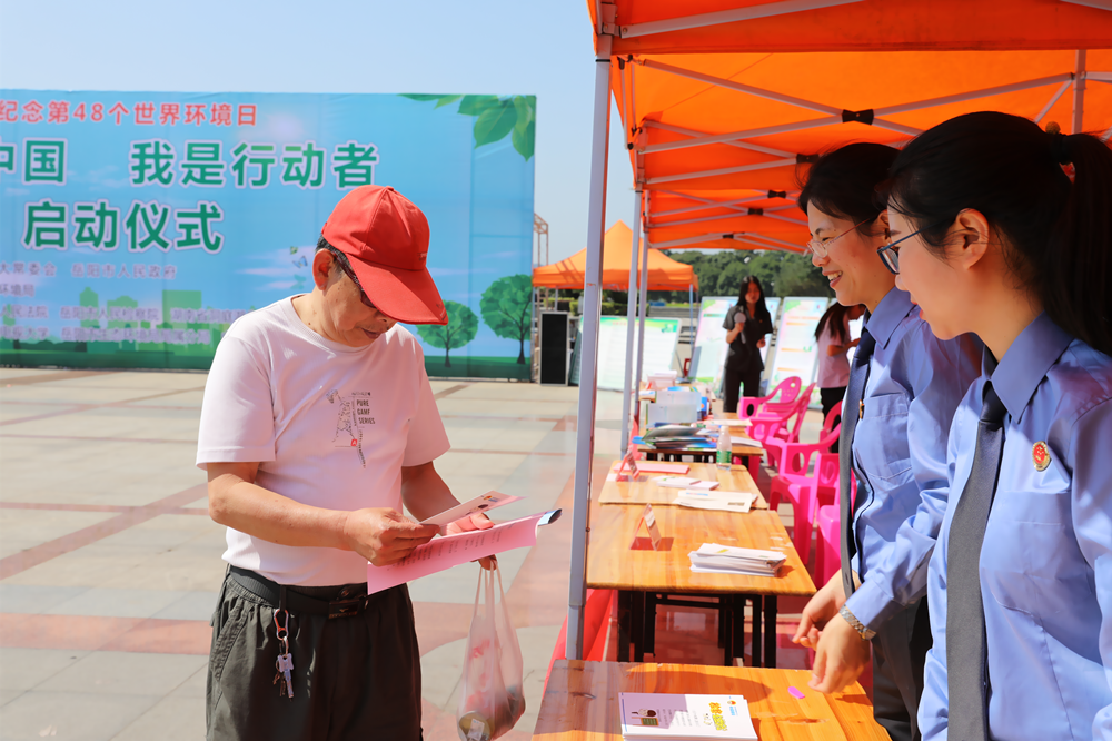 6月4日,岳阳市检察院组织干警参加在该市南湖广场举行的“美丽中国,我是行动者”世界环境日环保系列法律法规宣传活动。