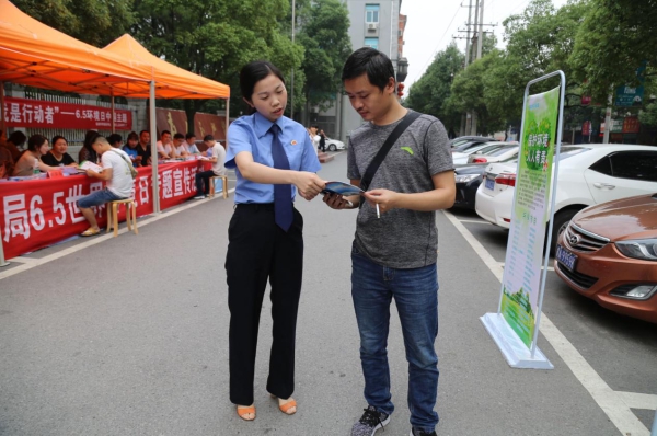 不断涌到咨询台前的市民朋友,你一言,我一语,气氛好不热闹;被这气氛所感染,检察官们纷纷站起身,走上街头,分发资料,与市民朋友零距离交流,一句话、一个眼神、一个微笑、一次握手,在简短的交流中,关于环保、节约、美丽等字眼的芬芳就在我们周围传播开来。