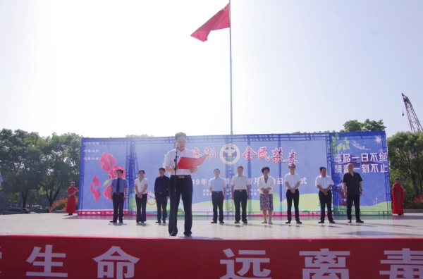 来自禁毒委成员单位、机关企事业单位、社区、高校、中小学校的代表以及禁毒志愿者代表等千余人共同向全社会发出全民禁毒公约,号召全社会共同抵制毒品、拥抱健康人生。