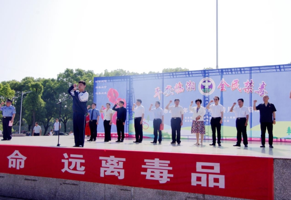 本网讯(通讯员 汤梦云)6月3日,骄阳似火,2019年临湘市全民禁毒宣传月暨“平安临湘、全民禁毒”活动在绿化广场举行。