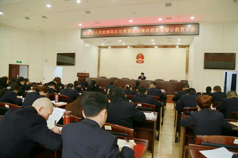 为深入学习贯彻全国、省、市政法队伍教育整顿动员部署会议精神,结合该院队伍教育整顿工作安排,加强党风廉政建设,临湘市检察院召开队伍教育整顿廉政教育暨警示教育大会,由党组书记、检察长吴春生以廉政教育为主题讲授专题党课。
