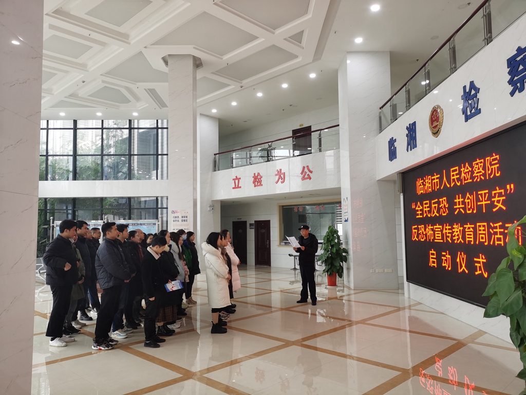 市检察院党组书记、检察长陈尧表示,本周,临湘检察院将运用新媒体(微信公众号、微博等)全方位、多角度向社会各界和广大群众解读宣传《反恐怖主义法》,进一步凝聚反对恐怖主义、维护国家安全的强大社会共识,形成反恐防控的强大社会合力,共同打好反恐怖人民战争,筑牢筑实维护国家安全的人民防线。