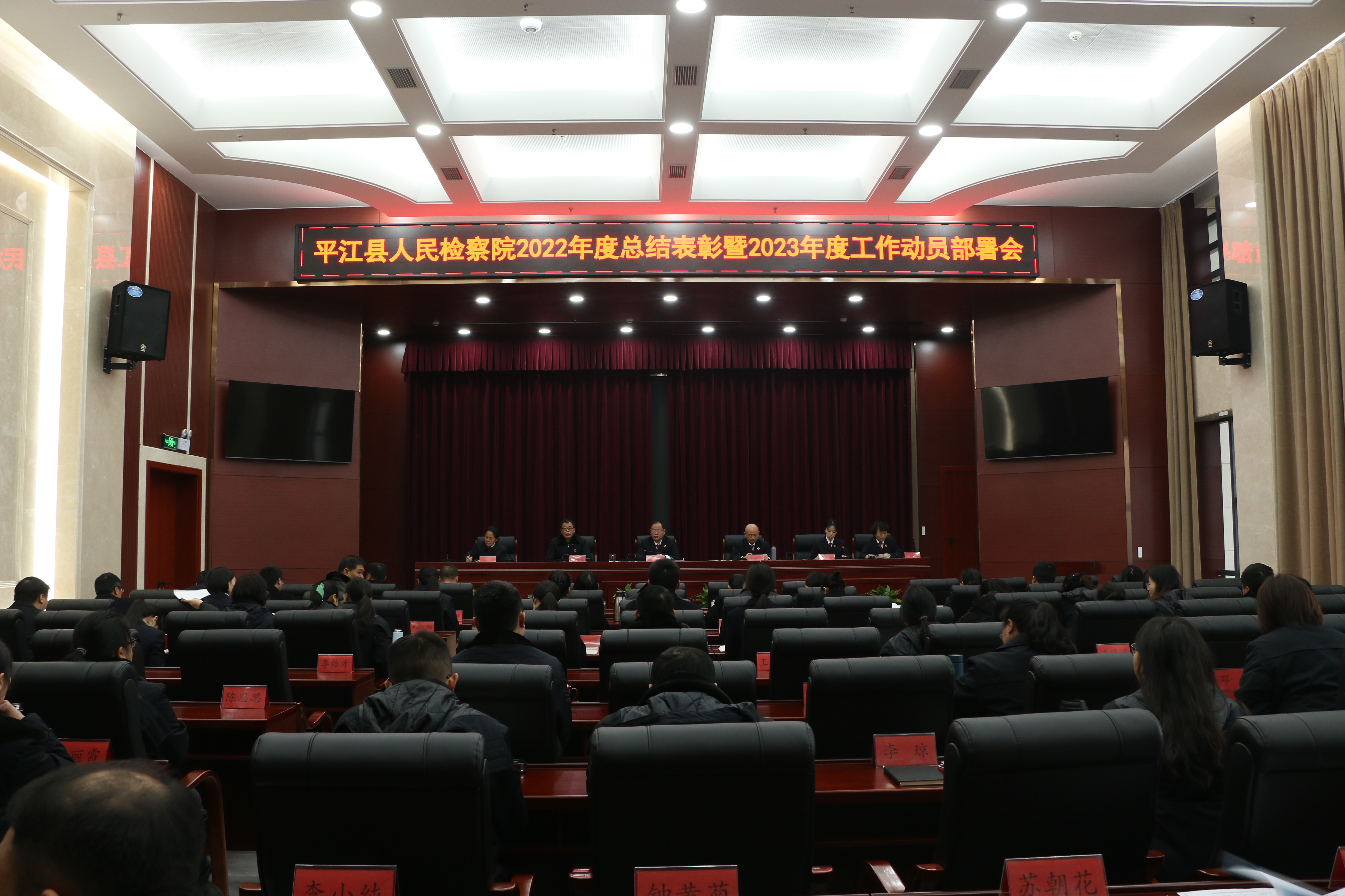 2月3日,平江县人民检察院召开2022年度总结表彰暨2023年工作部署会,全面总结2022年检察工作情况,安排部署2023年重点工作任务,动员全院上下凝心聚力、敢于担当、狠抓落实,以饱满的热情接续努力,确保2023年各项工作取得新突破、实现新发展。
