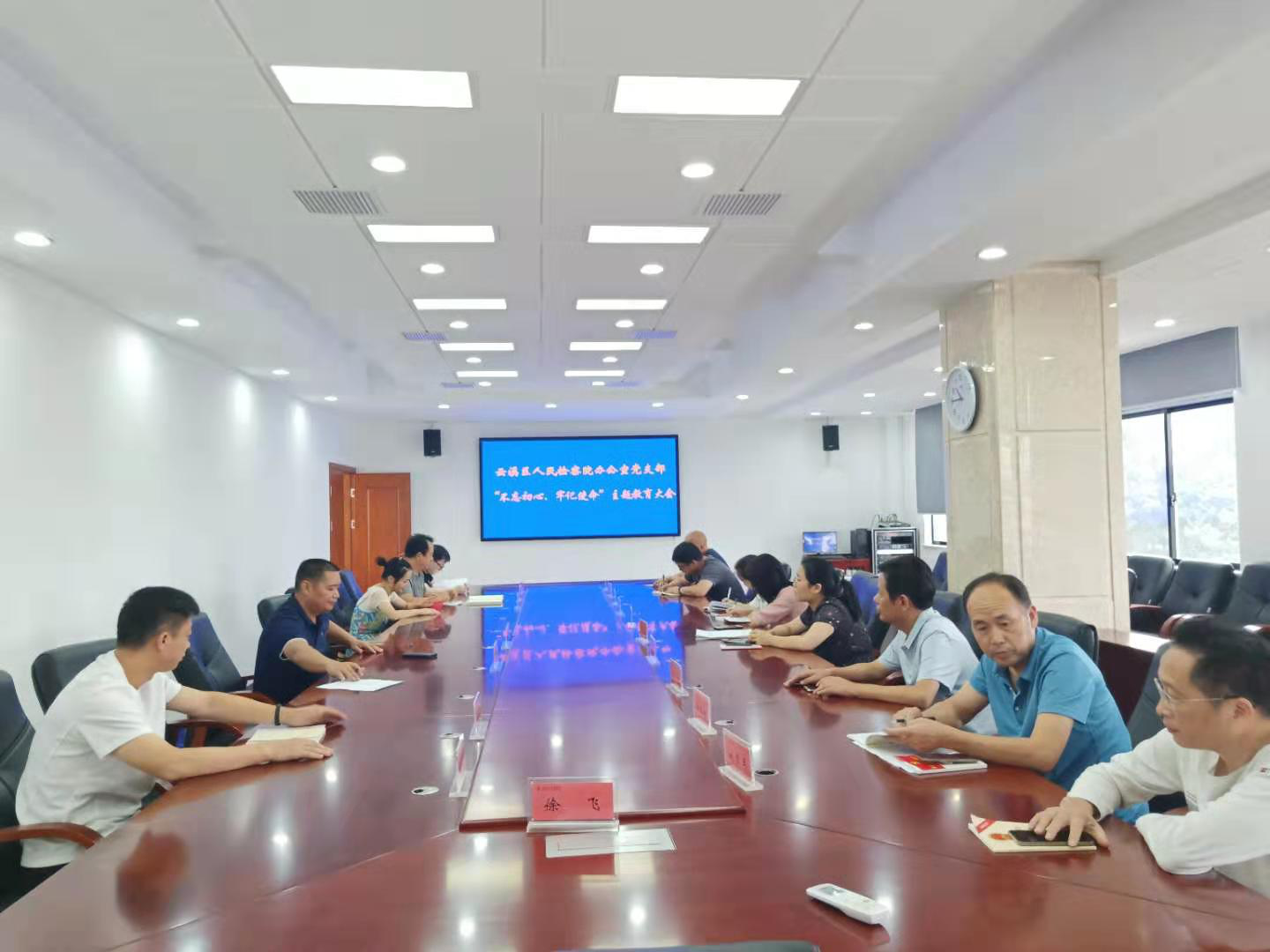 2019年9月26日下午15时,云溪区人民检察院办公室党支部在六楼608召开“不忘初心,牢记使命”主题教育大会。办公室党支部书记胡立楷带领大家一起学习《习近平新时代中国特色社会主义思想学习纲要》第一章、第二章,最后大家共同学习了《中国共产党章程》。