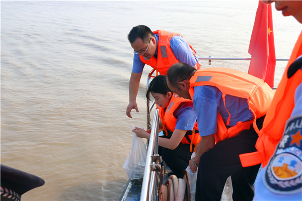 8月31日,云溪区人民检察院联合区农业农村局、长江航运公安局岳阳分局开展增殖放流活动,向长江流域投放27.5万尾鱼苗,修复因禁渔期用电捕鱼受到损害的生态环境。