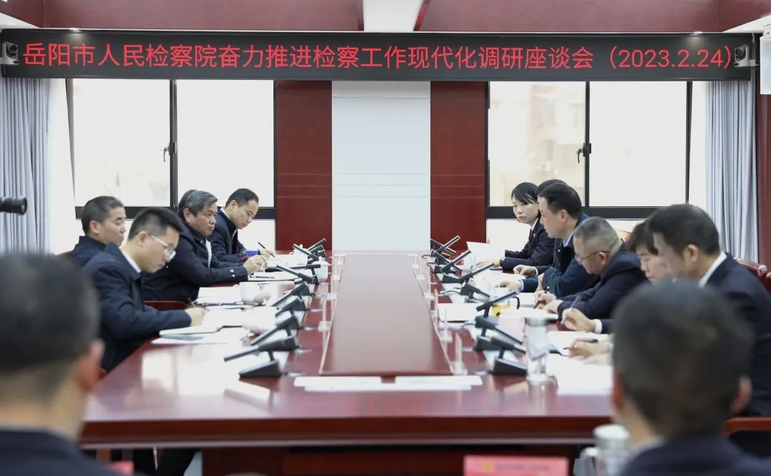 2月24日,岳阳市人民检察院党组书记、检察长李胜昔一行深入岳阳楼区人民检察院开展调研座谈,就奋力推进检察工作现代化进行指导。岳阳楼区委副书记、区长白再兴陪同调研。岳阳楼区人民检察院全体班子成员及内设机构负责人参加座谈。
