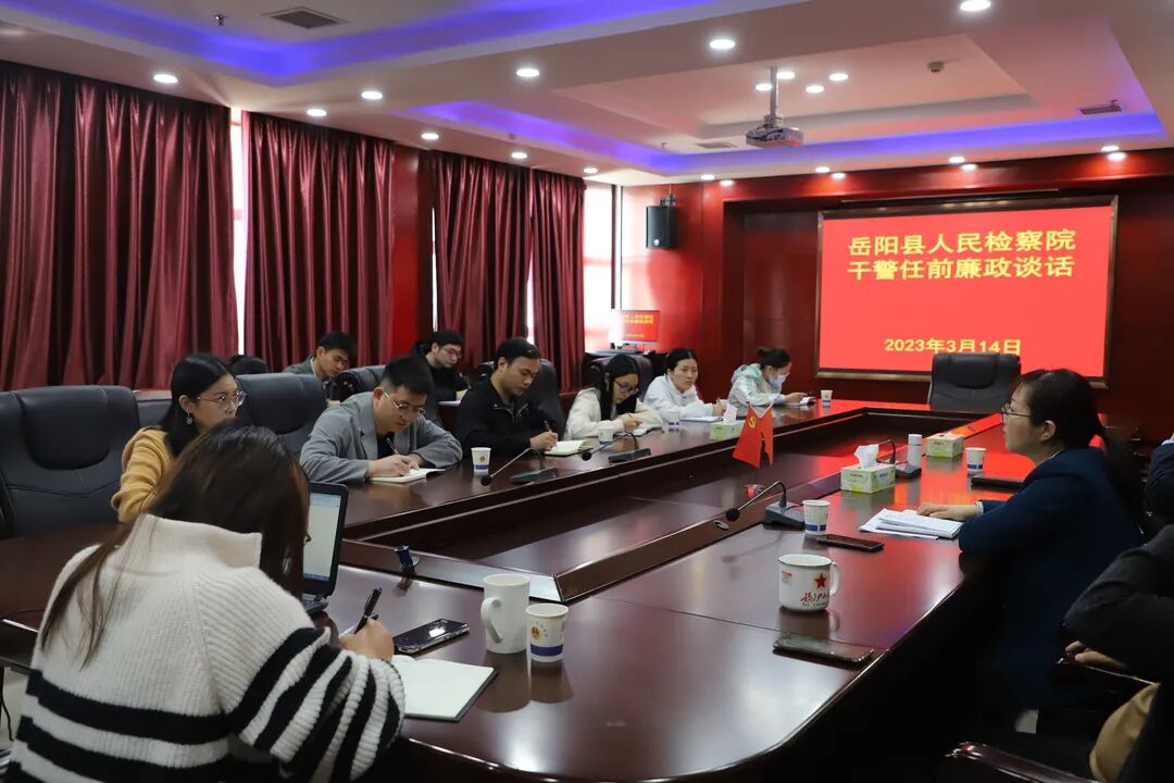 3月14日,岳阳县检察院组织开展干警任前集体廉政谈话,对新提拔或岗位调整的11名干警进行集体廉政谈话。