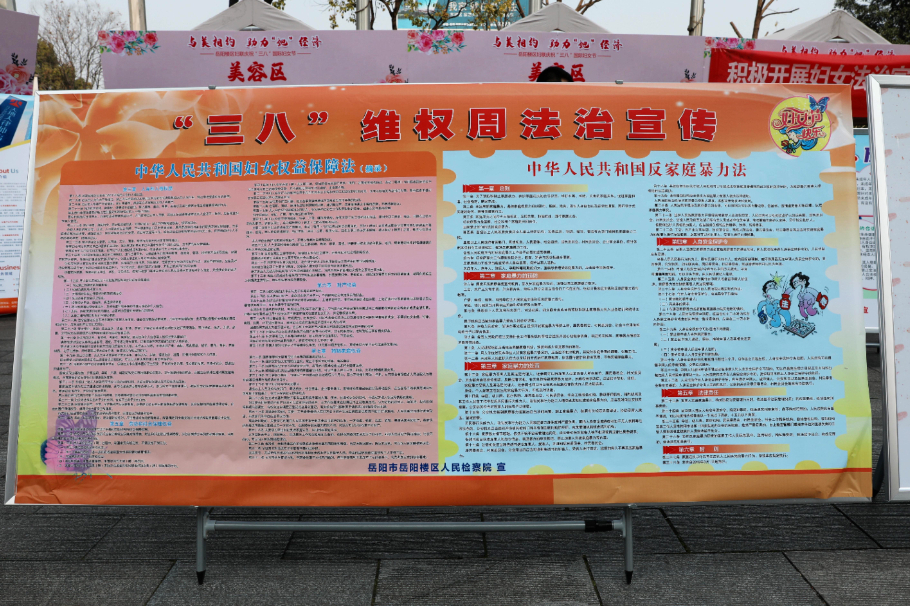 3月3日,岳阳楼区人民检察院组织干警参加由岳阳楼区妇联牵头举办的“建设法治楼区·巾帼在行动”维权周宣传活动。 在花板桥步步高广场,检察干警通过现场悬挂宣传横幅、设置宣传展板、发放宣传手册、开展法律咨询等多种形式,向来往群众进行法治宣传,进一步增强群众对《妇女权益保障法》《反家庭暴力法》《未成年人保护法》等法律知识的了解。 “老板降低我产假期间工资待遇……”“丈夫对我多次谩骂、殴打……”活动现场吸引了不少群众前来咨询。检察官认真倾听群众提出的问题,并一一解答。此次宣传活动,我院共向现场群众发放宣传资料1000余份,提供法律咨询40余人次。